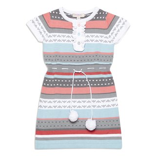 линия талии подчеркнута вязаным поясом с помпонами