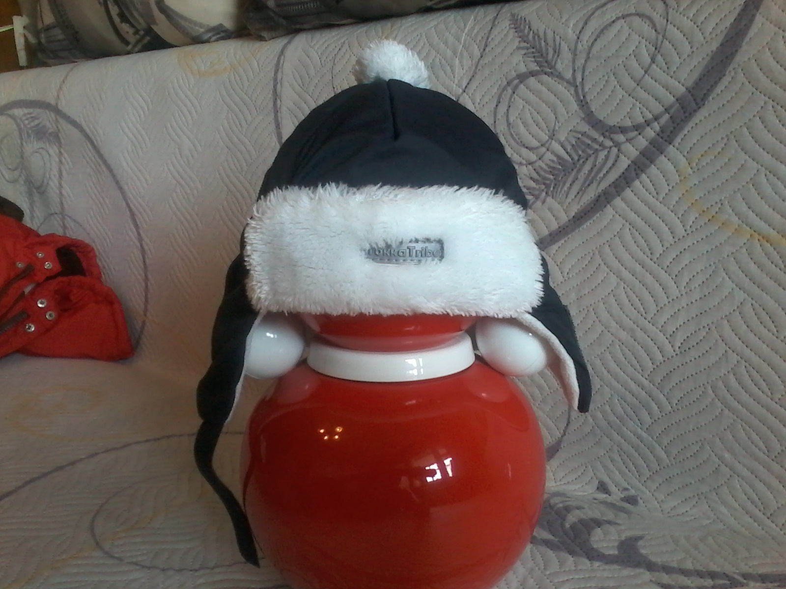 верхняя ткань плащевка, внутри флисовая подкладка, с наполнителем - синтепон, очень теплая, застежка липучка.